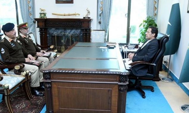 وزیرِ اعظم عمران خان سے چیئرمین جوائنٹ جیفس آف سٹاف کمیٹی جنرل ندیم رضا اور ڈی جی سٹریٹیجک پلانز ڈویژن لیفٹینینٹ جنرل ندیم ذکی منج کی ملاقات