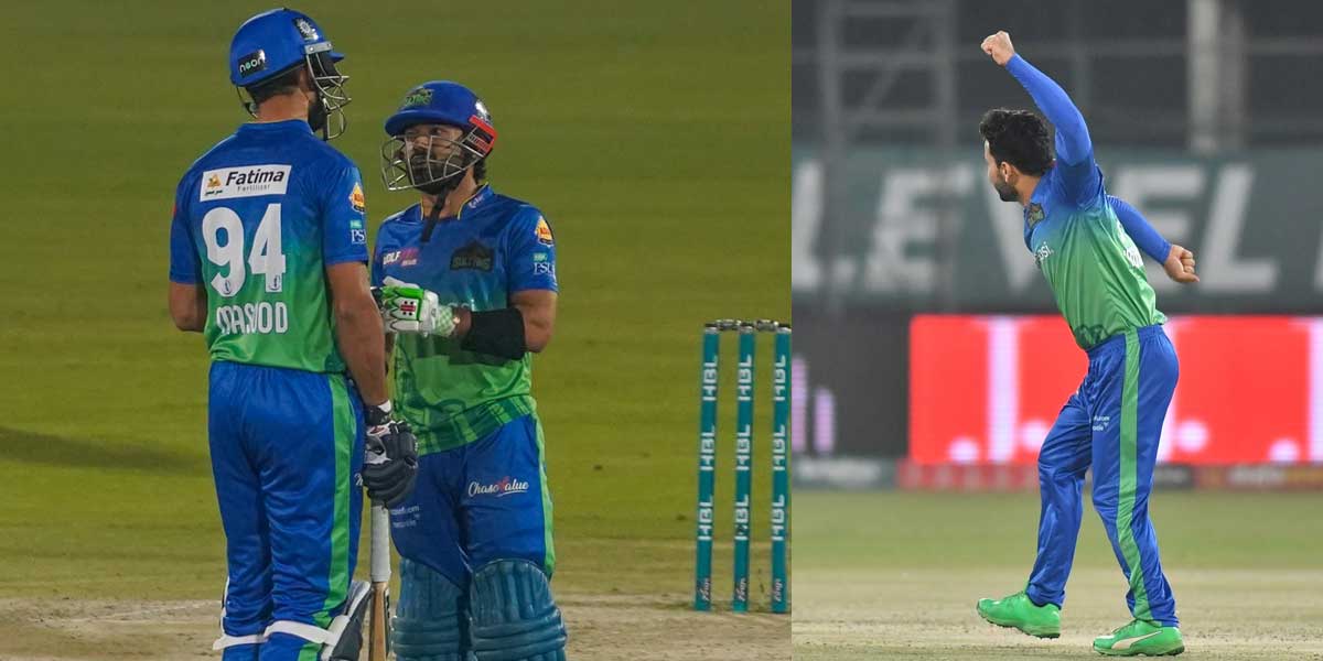 ملتان سلطانز کی جانب سے ہدف کے تعاقب میں کپتان محمد رضون اور شان مسعود نے شاندار بیٹنگ کا آغاز کیا، شان مسعود 18 گیندوں پر 26 رنز بنانے کے بعد محمد الیاس کا شکار بنے جس کے بعد صہیب مقصود بیٹنگ کے لیے آئے اور 30 رنز کی اننگز کھیلنے کے بعد محمد نبی کا شکار بنے۔