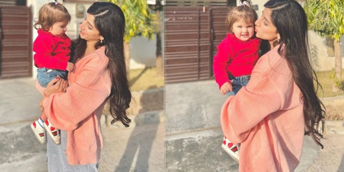 ماورہ حسین کی جانب سے پوسٹ کی جانے والی تصاویر میں دیکھا جا سکتا ہے کہ اداکارہ کی گود میں ایک خوبصورت بچی موجود ہے۔