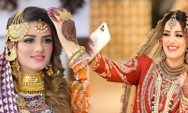 ٹک ٹاک اسٹار ایک تصویر میں مایوں کا لباس جبک ایک تصویر میں سرخ رنگ کا عروسی لباس زیب تن کی ہوئی ہیں۔