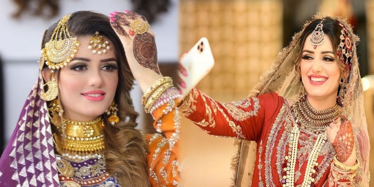 ٹک ٹاک اسٹار ایک تصویر میں مایوں کا لباس جبک ایک تصویر میں سرخ رنگ کا عروسی لباس زیب تن کی ہوئی ہیں۔