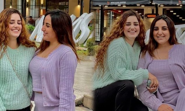 تصاویر میں حریم شاہ اور صندل خٹک کو کسی ریسٹورنٹ میں دیکھا جا سکتا ہے۔