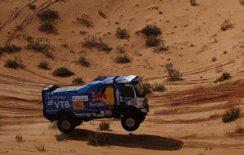 epa09666357 Russian rider Eduard Nikolaev of Kamaz Master team in action during the stage 3 of the Rally Dakar 2022 between Al Qaisumah and Al Qaisumah, Saudi Arabia, 04 January 2022. EPA-EFE/YOAN VALAT
