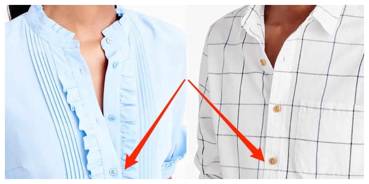 مردوخواتین کے مغربی طرز کے لباس میں کچھ معمولی فرق ہی ہوتا ہے، جن میں سے ایک فرق شرٹس کے بٹنوں میں ہوتا ہے۔