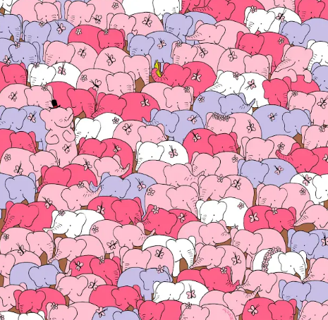 اس تصویر میں ہاتھیوں کے درمیان ایک دل چھپا ہوا ہے جسے آپ کو تلاش کرنا ہے۔