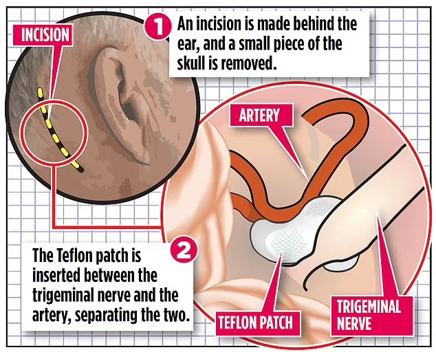 گائے اینڈ سینٹ تھوماس اسپتال کے نیورولوجسٹ ڈاکٹر گیورگی لیمبروکا اس سرجری سے متعلق کہنا ہے کہ تمام نیورو سرجنزنے اس سرجری کے پہلے مرحلے میں کان کے پیچھے سر سے ایک چھوٹے سےحصے کو احتیاط سے ٹرائگمینل اعصاب (کرینیئل اعصاب کا پانچواں بڑاجوڑا جو اوپتھالمک، میگزیلیری اورمیدیبیولر اعصاب سے منسلک ہوتا ہے) سے علحیدہ کیا۔