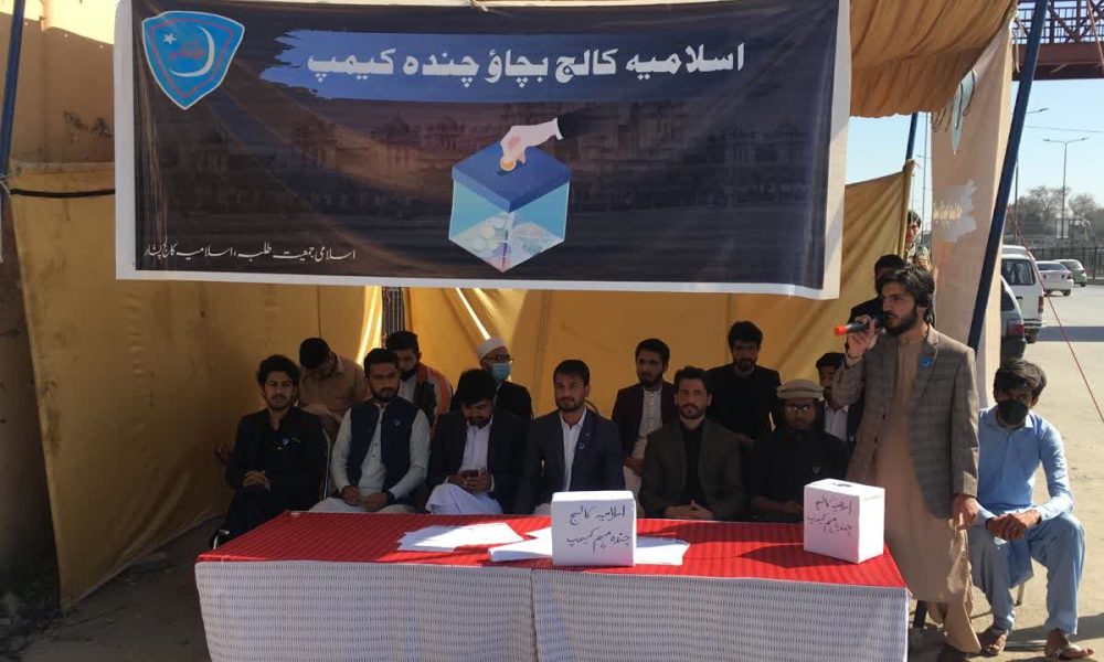 واضح رہے کہ طلبہ نے اسلامیہ کالج بچاؤ چندہ کیمپ بھی لگایا ہے اور یہ کیمپ اسلامیہ کالج کے گیٹ نمبر 2 کے سامنے لگایا گیا ہے۔