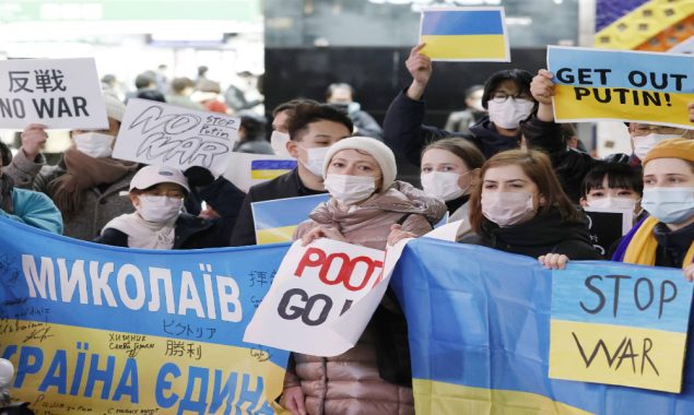 یوکرین پر روسی افواج کے حملے کے بعد جاپان کے شہروں میں مظاہرہ اور ریلیاں نکالی گئیں۔
