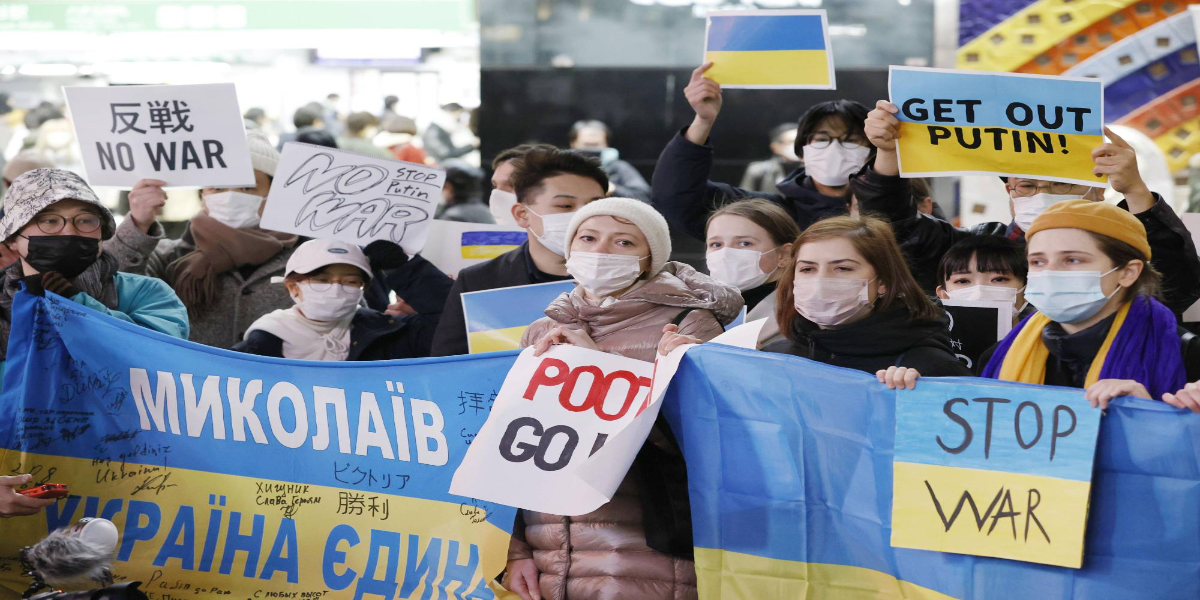 یوکرین پر روسی افواج کے حملے کے بعد جاپان کے شہروں میں مظاہرہ اور ریلیاں نکالی گئیں۔
