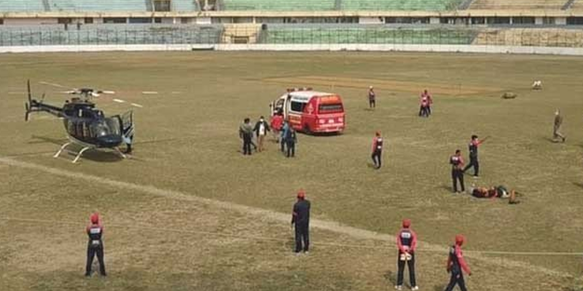 بنگلادیش پریمیئر لیگ فرنچائز ڈھاکا کی پریکٹس کے دوران اچانک اسٹیڈیم میں ہیلی کاپٹر اتر آیا۔