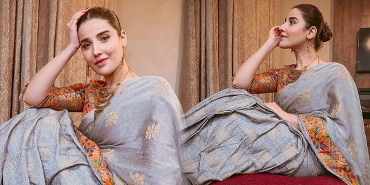 انسٹاگرام پر اداکارہ کی جانب سے پوسٹ کی جانے والی تصویر میں حریم فاروق کو ساڑھی میں دیکھا گیا۔