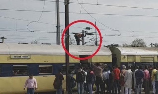رپورٹ کے مطابق بھارت کی ریاست بہار کے دناپور اسٹیشن پر ایک خوفناک واقعہ پیش آیا ہے جہاں ایک نوجوان نے ٹرین کی چھت پر چڑھ کر خودکشی کرنے کی کوشش کی تاہم وہاں موجود عملے نے اس کی خودکشی کی کوشش کو ناکام بنا دیا۔