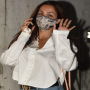 ملائکہ نے اپنے بالوں کو کھلا رکھا اور خود کو وائرس سے بچانے کے لیے ڈبل ماسک پہنا۔