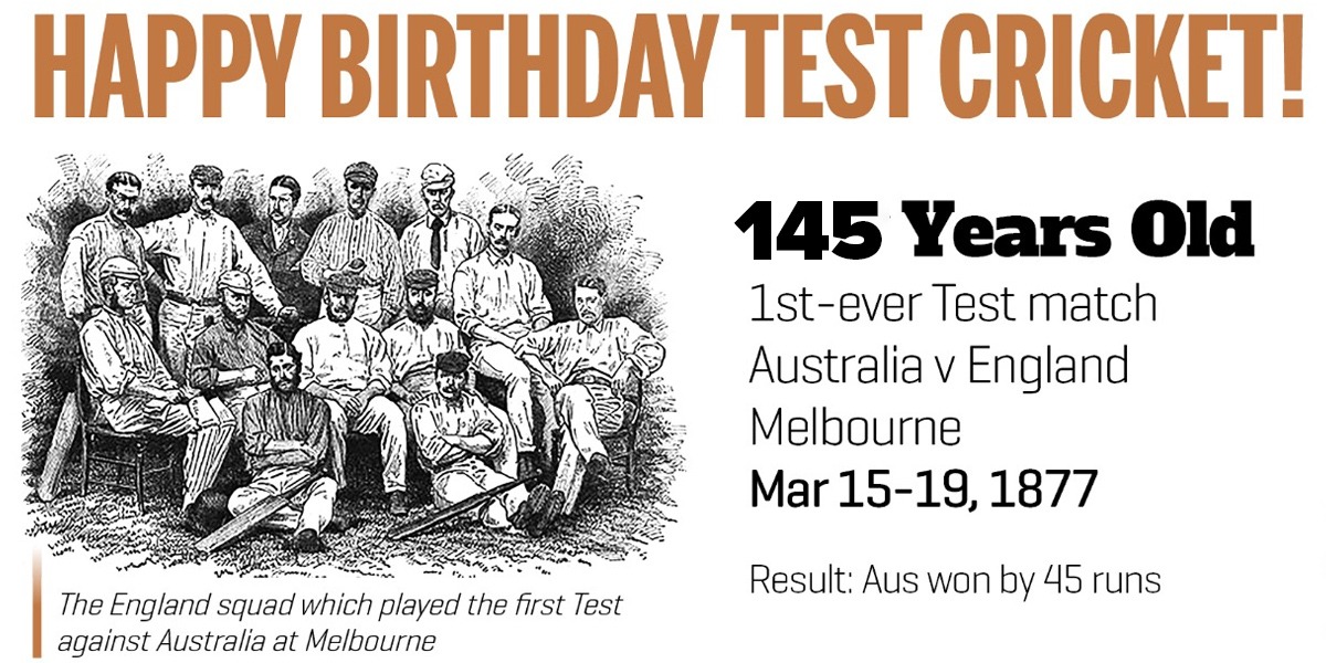 کرکٹ کی تاریخ میں آج یعنی 15 مارچ کا دن بے حد خاص ہے۔ آج سے 145 سال پہلے 15 مارچ 1877 کو آسٹریلیا اور انگلینڈ کے درمیان پہلی بار ٹیسٹ میچ کھیلا گیا۔