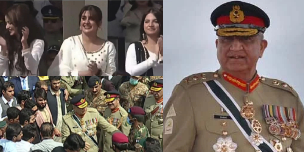 آرمی چیف نے پریڈ میں شرکت کرنے والے شوبز ستاروں سے ملاقات کی، ملاقات کرنے والوں میں حریم فاروق، سجل علی، مایا علی اور وہاج علی شامل تھے۔