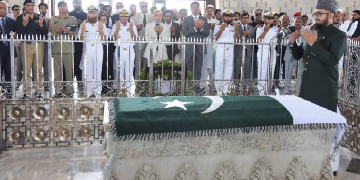 وزیر اعظم نے اتحادی جماعتوں کے رہنماؤں کے ہمراہ مزار قائد پر حاضری دی، جہاں انہوں بانی پاکستان کی قبر پر پھولوں کی چادر چڑھائی اور فاتحہ خوانی کی۔