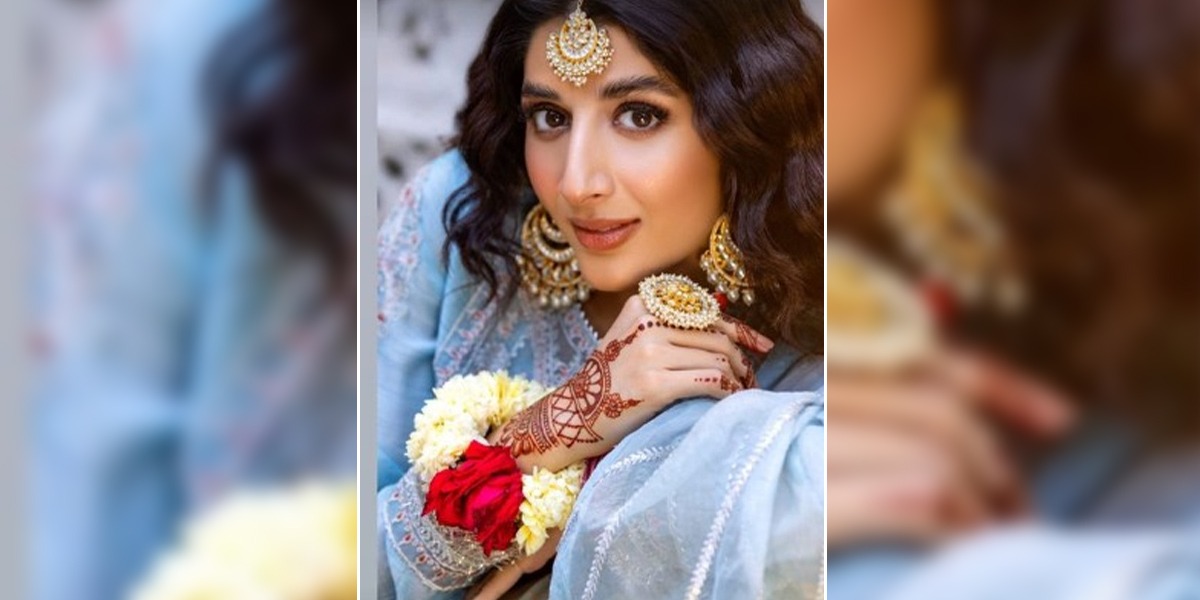ماورہ حسین کی جانب سے پوسٹ کی جانے والی تصاویر میں دیکھا جا سکتا ہے کہ اداکارہ نے فیروزی رنگ کا لباس زیب تن کیا ہوا ہے۔