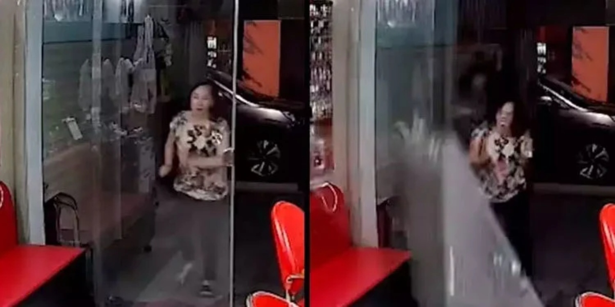 دوڑتی ہوئی خاتون شیشے کے دروازے سے ٹکرا کر گِر پڑی، پھر کیا ہوا؟ ویڈیو