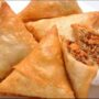 سموسہ بنانے کے لیے ایک پیکٹ سموسے کی پٹیوں میں پاستا اور قیمے کا آمیزہ بھر کر آٹے اور انڈے کے آمیزے سے بند کر دیں۔