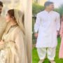 تصاویر میں عائشہ خان نے ہلکے گلابی رنگ کا خوبصورت لباس زیب تن کیا ہوا ہے جبکہ اُن کے شوہر سفید قمیض شلوار میں ملبوس ہیں۔
