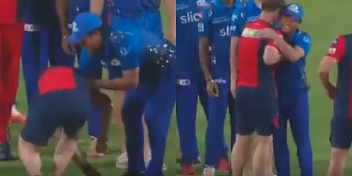 میچ کے بعد دونوں ٹیموں کے کھلاڑی مصافحہ کر رہے تھے اور خوشی کا تبادلہ کر رہے تھے کہ اچانک پنجاب کنگز کے فیلڈنگ کوچ رہوڈس نے ممبئی انڈینز کے مینٹر سچن ٹنڈولکر کے پاؤں چھوئے۔