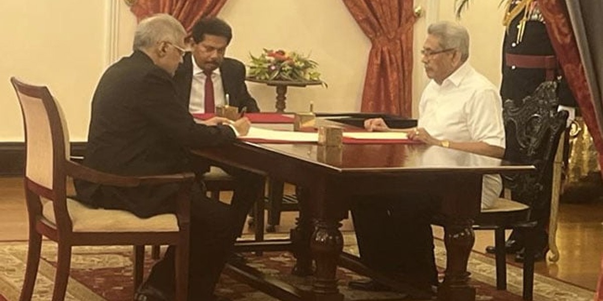 راجا پاکسے نے 73 سالہ معمر رانیل وکرما سنگھے سے حلف لیا، راجا پاکسے نے کل قوم سے خطاب میں اعلان کیا تھا کہ اس ہفتے ایک وزیر اعظم اور ان کی کابینہ کا قیام عمل میں لایا جائے گا۔