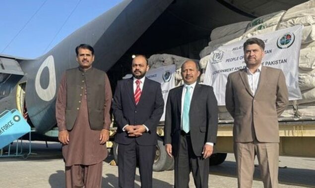 امدادی سامان نور خان بیس سے سی ون تھرٹی کی خصوصی پرواز کے ذریعے روانہ کیا گیا ہے۔