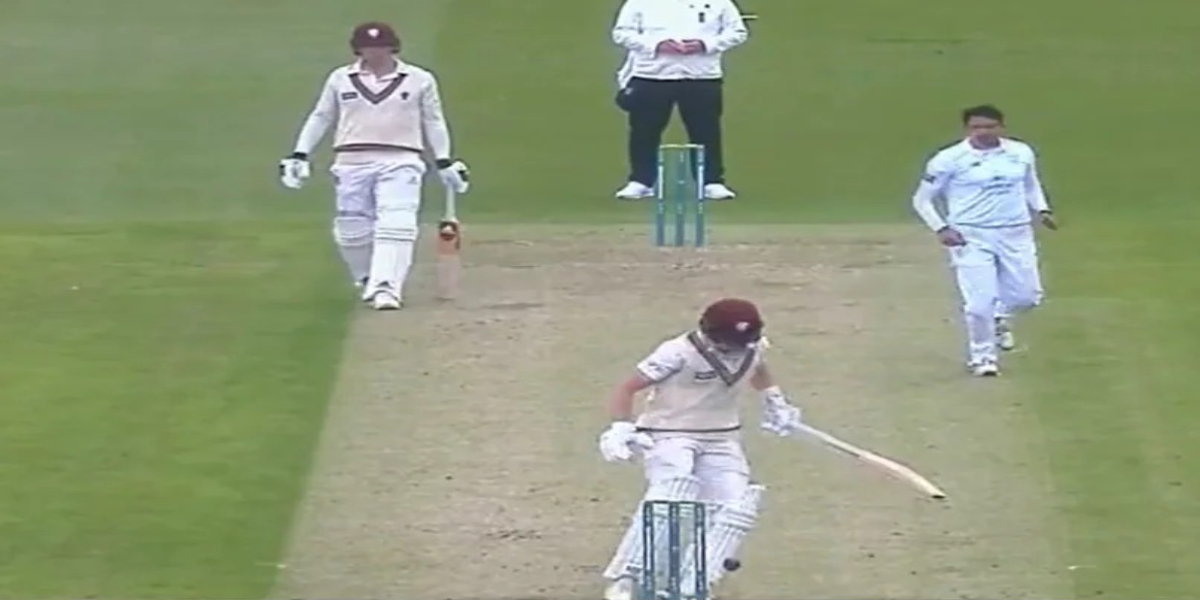 کاؤنٹی چمپئین شپ کے ایک میچ میں محمد عباس کی گیند پر سمر سیٹ کے کپتان ٹام ایبل عجیب انداز میں آؤٹ ہو کر پویلین واپس لوٹ گئے۔