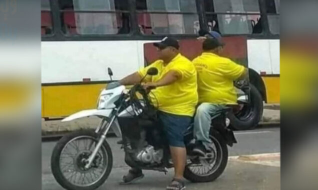 اس تصویر میں موٹر سائیکل پر ایک شخص کو دیکھا جا سکتا ہے جس نے پیلے رنگ کی شرٹ پہنی ہے لیکن اس کے پیچھے ایک عجیب سا منظر نظر آ رہا ہے۔