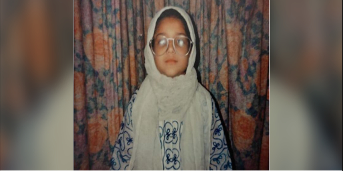 کیونکہ اس تصویر میں بچی نے چشمہ بھی پہنا ہواہے اس لئے اسے پہچاننا اور بھی دشوار ہوگیا ہے۔