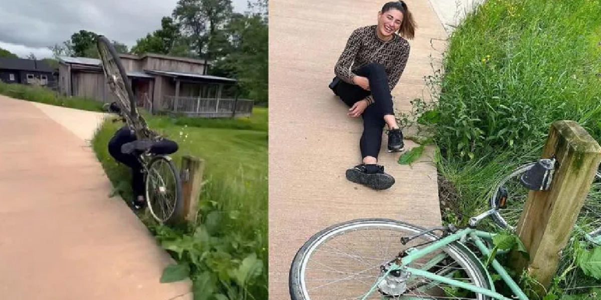 نرگس فخری سائیکل چلاتے ہوئے بری طرح گر پڑیں، ویڈیو وائرل