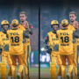 تفصیلات کے مطابق شیئر کی گئی تصویر میں دیکھا جا سکتا ہے کہ پشاور زلمی کے شعیب ملک،لوینگسٹون اور وکٹ کیپر محمد حارث فتح کا جشن منا رہے ہیں۔