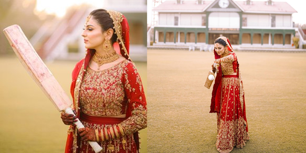AdvertisementPakistan all-rounder Kainat Imtiaz poses for a cricket-themed wedding photoshoot 😍