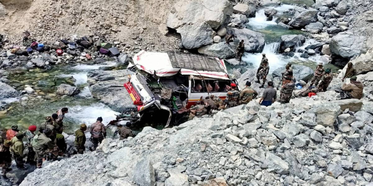 فوجی گاڑی سڑک سے پھسل کر شیوک ندی میں گر گئی جس کی گہرائی تقریباً 50 تا 60 فٹ بتائی جاتی ہے،
