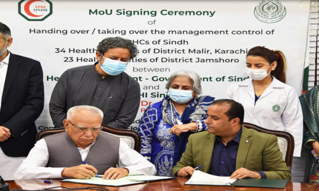 وزیر صحت و بہبود آبادی سندھ ڈاکٹر عذرا پیچوہو کی موجودگی میں محکمہ صحت سندھ اور پی پی ایچ آئی کے مابین مفاہمت کی یاداشت پر دستخط کیے گئے ہیں۔