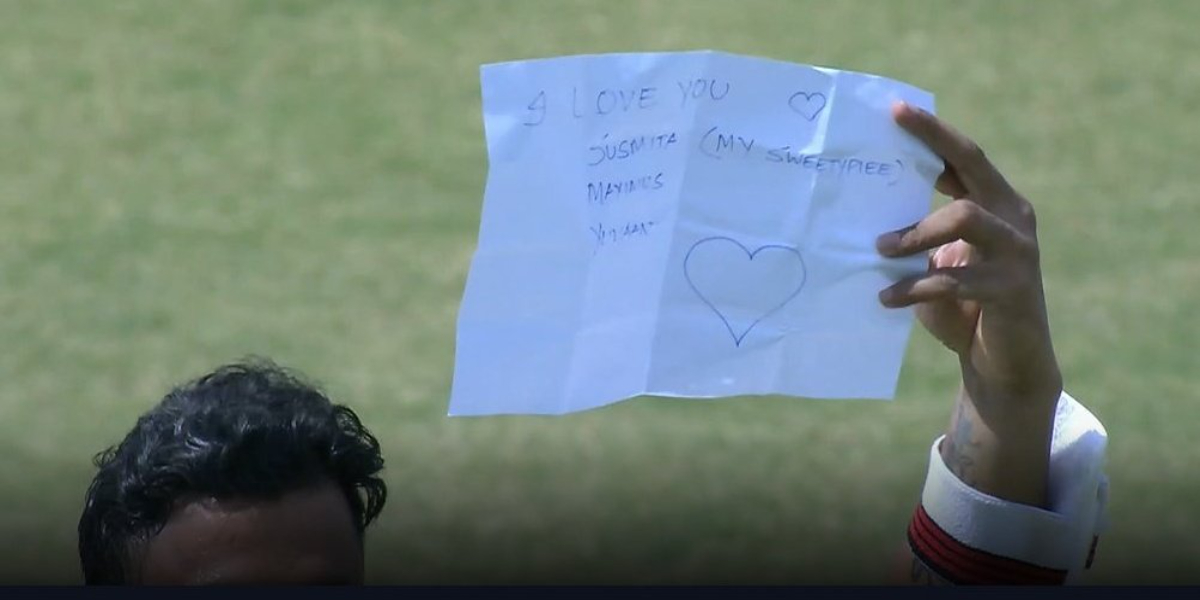 بلے کے ساتھ ان کی بہادری کے علاوہ، اس شو کو جس چیز نے چرایا وہ سنچری بنانے کے بعد اپنے خاندان کے لیے ان کا اشارہ تھا۔