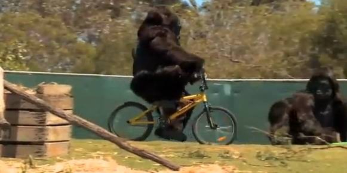 اس ویڈیو میں گوریلا کو سائیکل چلاتے ہوئے دیکھا جا سکتا ہے جو ہنسنے پر مجبور کر دیتا ہے، یہ منظر کچھ لوگوں کے لئے انتہائی دلچسپ بھی ہے جنہوں نے کبھی کسی دیو ہیکل گوریلا کو مضحکہ خیز انداز میں سائیکل چلاتے نہیں دیکھا۔