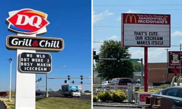 ایک ہفتے قبل مارش فیلڈ مک ڈونلڈ کی دکان نے اپنے سائن بورڈ پر لکھا ، اے ڈیری کوئن، کیا اشتہاراتی جنگ شروع کرنا چاہتے ہو؟
