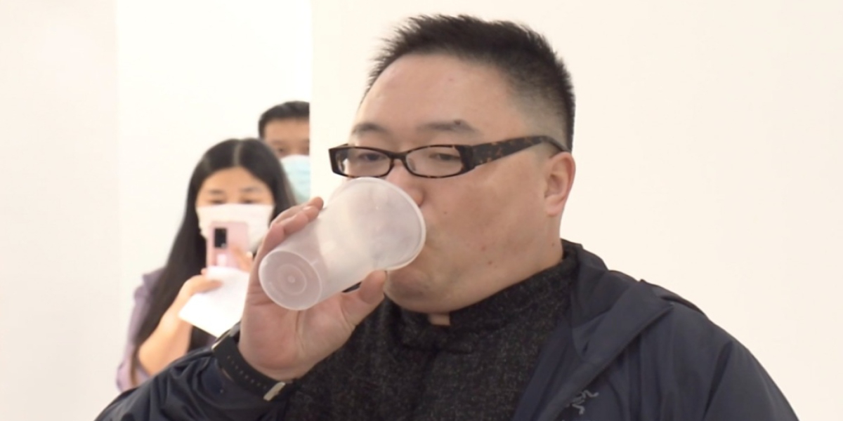ایک آن لائن چینی سرکاری میڈیا آؤٹ لیٹ کی طرف سے پوسٹ کی گئی ایک ویڈیو میں کمیونٹی ہیلتھ سنٹر میں لوگوں کو اپنے منہ میں ایک سفید کپ کی چھوٹی نوزل چپکتے ہوئے دکھایا گیا ہے۔