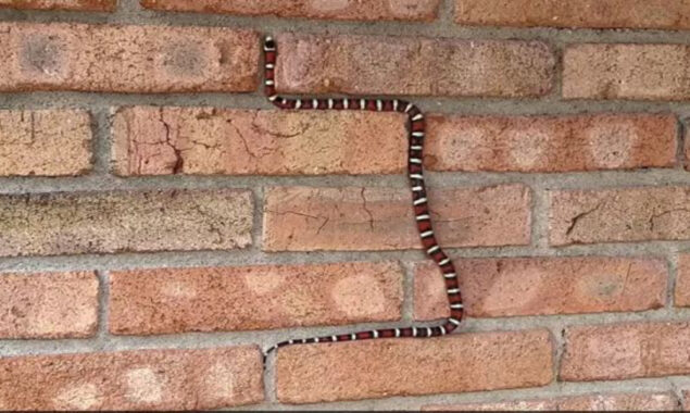 ویڈیو میں دیکھا جا سکتا ہے کہ سانپ بڑی مہارت کے ساتھ دیوار کی اینٹوں کے درمیان خالی جگہ پر کامیابی کے اوپر چڑھتا جا رہا ہے۔