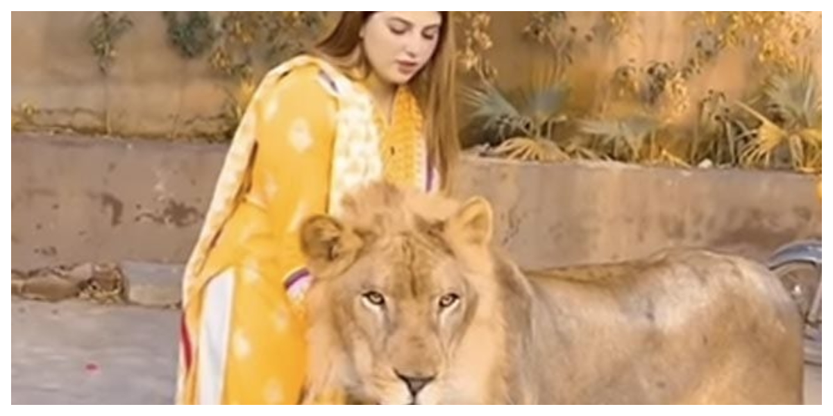 سوشل میڈیا پر ایک ویڈیو وائرل ہو رہی ہے جس میں ایک لڑکی کو پیلے لباس میں شیرکے پاس کھڑا دیکھا جا سکتا ہے۔
