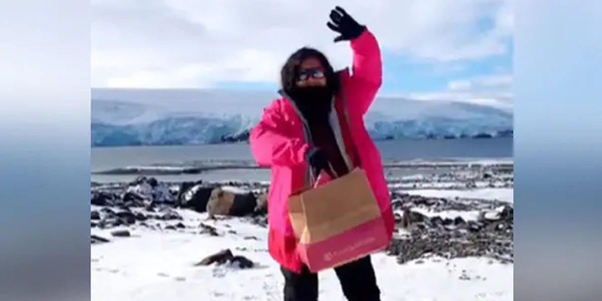 سوشل میڈیا پرایک ویڈیو وائرل ہو رہی ہے جس میں دیکھا جا سکتا ہے کہ ایک خاتون نے سنگاپور سے انٹارکٹیکا تک کی فوڈ ڈیلیورکردیا۔