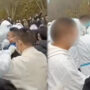 ویڈیو میں آئی فون فیکٹری کے سینکڑوں کارکنوں کو مارچ کرتے ہوئے دکھایا گیا ہے، جن میں سے کچھ کا سامنا پولیس والے لوگوں سے ہوا۔