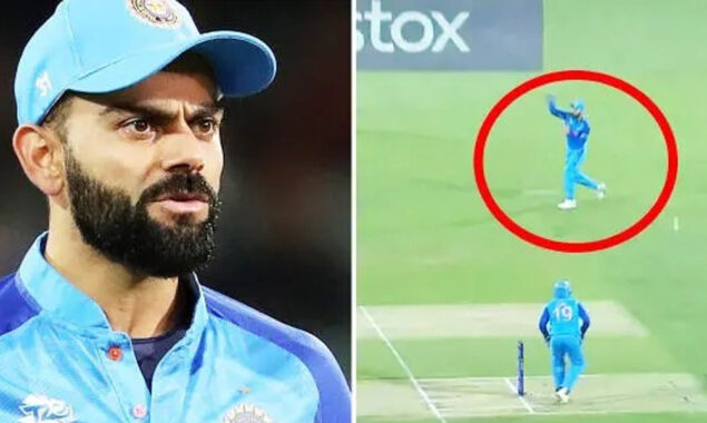 بھارتی فیلڈر ارشدیپ نے جیسے ہی تھرو وکٹ کیپر کی جانب پھینکی تو اچانک پوائنٹ پوائنٹ پوزیشن پر کھڑے ویرات کوہلی نے بیٹسمین کو دھوکہ دینے کے لیے ایسا ظاہر کیا کہ گیند ان کے پاس آئی اور انہوں نے خالی ہی ہاتھوں سے بولنگ اینڈ کی جانب فیک تھرو کی۔