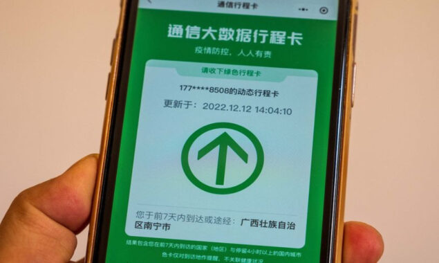 سرکاری مواصلاتی سفری کارڈ ایپ، جو فون سگنلز کا استعمال کرتے ہوئے اس بات کا پتہ لگاتی ہے کہ آیا کسی نے کسی ایسے علاقے کا سفر کیا ہے جسے زیادہ خطرہ سمجھا جاتا ہے، اسے چین کی صفر کوویڈ پالیسی کے مرکزی حصے کے طور پر دیکھا گیا۔