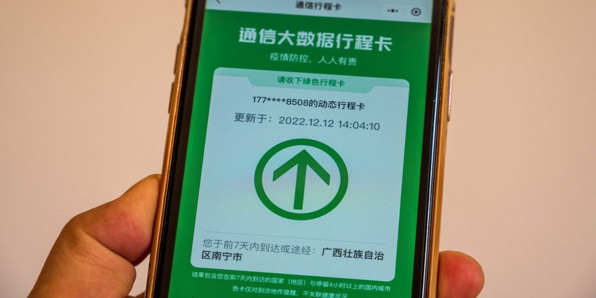 سرکاری مواصلاتی سفری کارڈ ایپ، جو فون سگنلز کا استعمال کرتے ہوئے اس بات کا پتہ لگاتی ہے کہ آیا کسی نے کسی ایسے علاقے کا سفر کیا ہے جسے زیادہ خطرہ سمجھا جاتا ہے، اسے چین کی صفر کوویڈ پالیسی کے مرکزی حصے کے طور پر دیکھا گیا۔