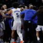 امریکہ میں این بی اے باسکٹ بال کورٹ میچ کے دوران میدان جنگ میں تبدیل ہو گئی، ریفری نے جھگڑا کرنے پر 11 کھلاڑیوں کو معطل کر دیا۔