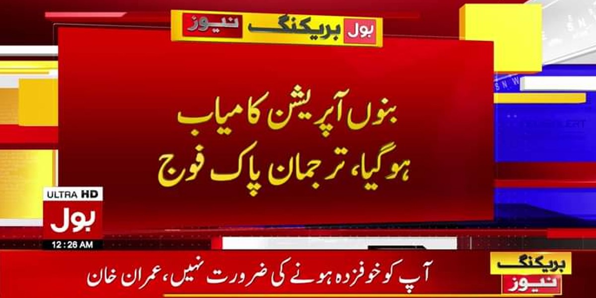 ترجمان پاک فوج کا کہنا تھا کہ آپریشن افواج کی دہشت گردی کیخلاف جنگ کے عزم کا منہ بولتا ثبوت ہے جبکہ دہشت گردی کے خلاف جنگ میں ہم کسی قربانی سے پیچھے نہیں ہٹیں گے۔
