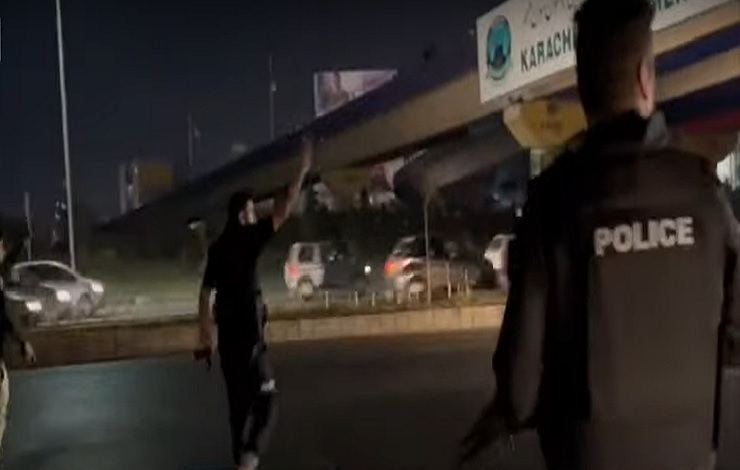 سی سی ٹی وی فوٹیج میں دیکھا جاسکتا ہے کہ دہشت گرد شاہراہ فیصل پر واقع پیٹرول پمپ کے راستے سے کے پی او دفتر کی جانب داخل ہوئے، کار سوار دہشت گرد پیٹرول پمپ کے راستے اندرونی سڑک پرداخل ہونے کے بعد پولیس چیف آفس کی جانب مڑگئے۔