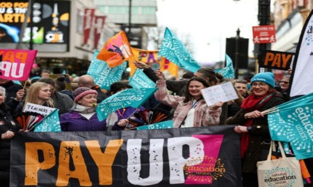 برطانیہ میں آج لاکھوں محنت کشوں نے اجرت میں اضافے کے لیے ہڑتال کی، مظاہرین نے اسکول اور ٹرانسپورٹ بند کر دی۔